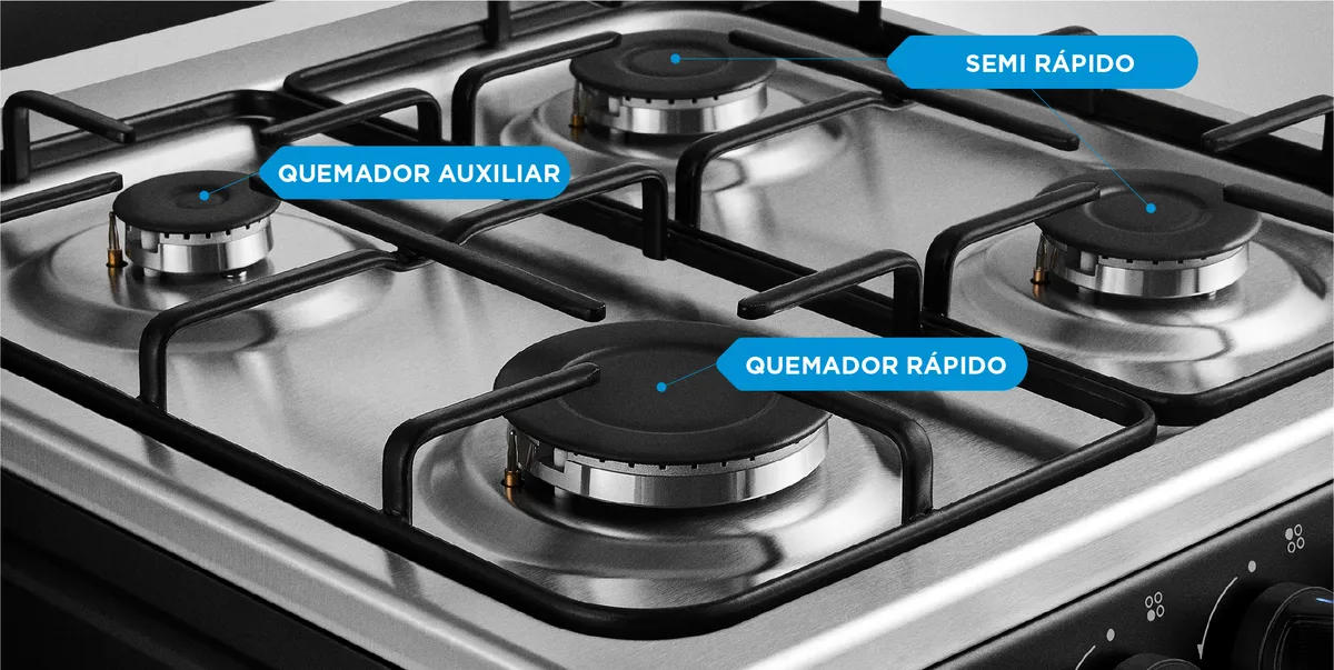 1 quemador rápido, 2 quemadores semi rápidos y 1 quemador auxiliar.