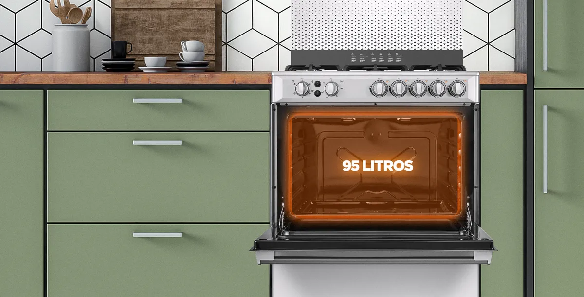 Prepara platos de mayor tamaño con su gran horno de 95 litros. Utiliza de mejor manera los espacios dentro del horno, puedes acomodar un gran trozo de carne o pavo sin mayores problemas.