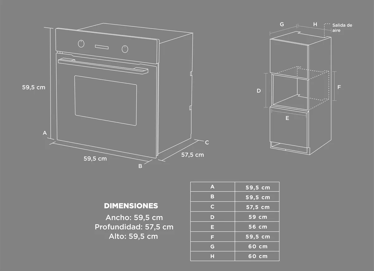 Horno Empotrado Eléctrico 82 lts