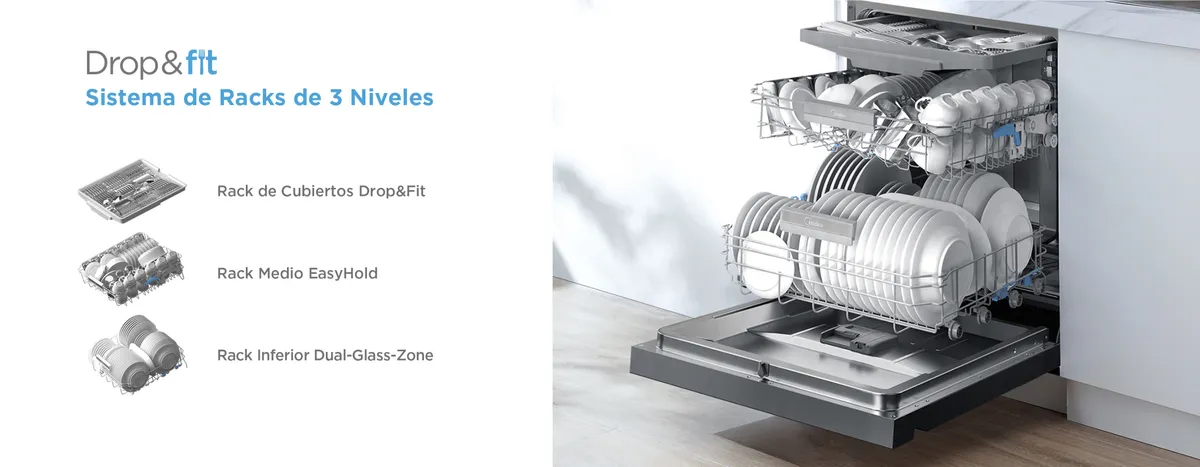 Ahorra tiempo, agua y energía limpiando solo la zona que elijas: superior o inferior.