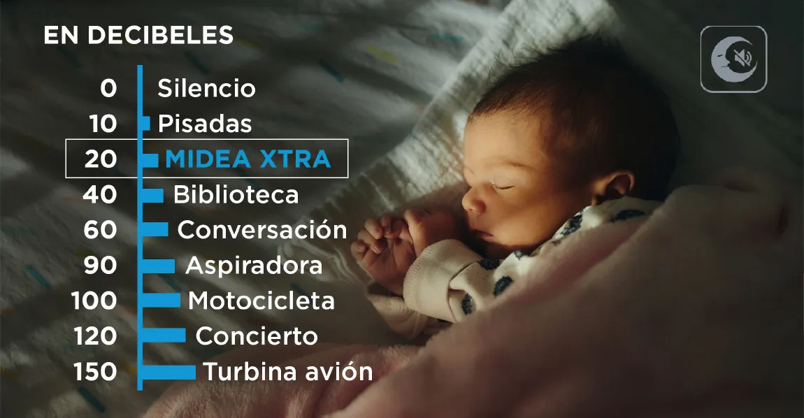 Cuando te vayas a la cama, activa la “Función de Silencio” desde el control remoto o con la aplicación de Midea: Smart Home. Así crearás un ambiente cómodo para dormir sin interrupciones.